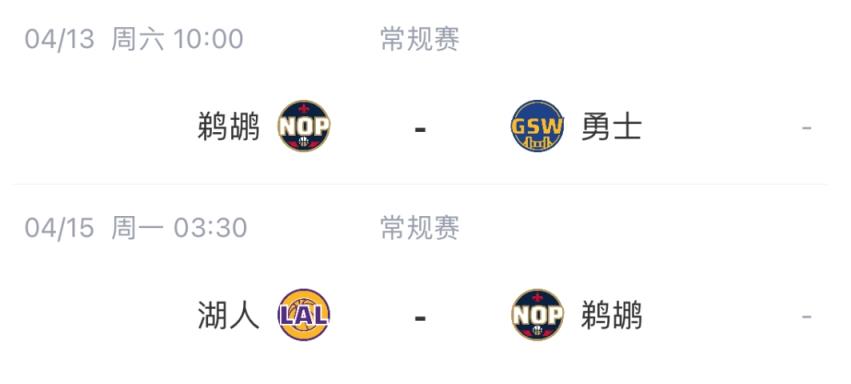 鹈鹕最后两场比赛