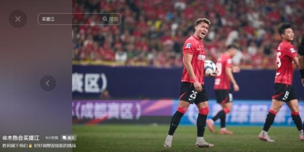 7月17日讯 足协杯1/8决赛,成都蓉城主场2-0击败南通支云。赛后,买提江更新了个人社交媒体,庆祝胜利。